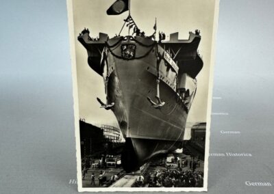 Hier zeigen wir eine Serie von Fotokarten, die für die Teilnehmer des Stapellaufs des Flugzeugträgers Graf Zeppelin am 8. Dezember 1938 von den Deutschen Werken in Kiel herausgegeben wurde.
