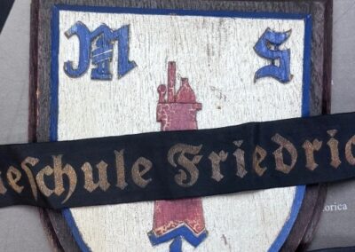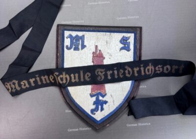 Wappen und Mützenband der Marineschule Friedrichsort bilden den Anlass für diesen Beitrag. Beide Objekte verweisen unmittelbar auf den Ausbildungsstandort an der Förde und den sachlich‑funktionalen Charakter der dortigen Marineeinrichtungen.