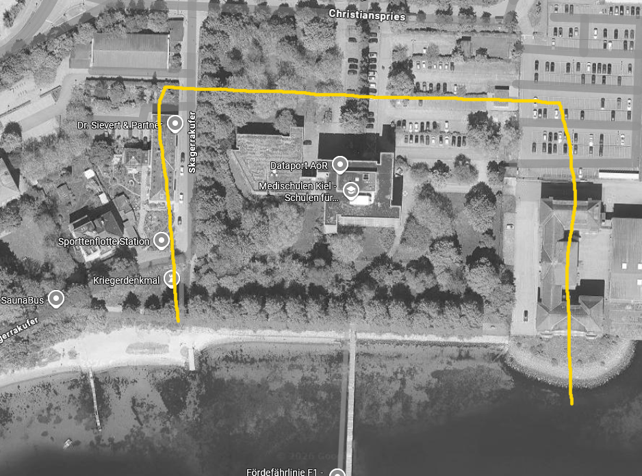 Heute finden sich nur noch wenige bauliche Reste im Strandbereich der Förde, die auf die frühere Marine- und Ausbildungseinrichtung hinweisen. Die baulichen Spuren der Marineschule sind damit weitgehend verschwunden.