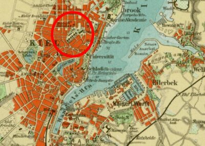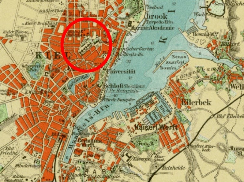 Wer sich mit der Marinegeschichte Kiels beschäftigt, stößt auf den ausgedehnten Backsteinbau in der Adolfstraße 14–28. Der heute von der Finanzverwaltung genutzte Gebäudekomplex diente über Jahrzehnte als wichtigste Verwaltungsstätte der deutschen Marine an der Kieler Förde. Von hier aus wurden logistisch und organisatorische Aufgaben für die in Kiel stationierten Marineeinheiten bearbeitet.