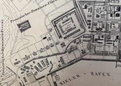 Lagebezug: Die Schule grenzte direkt an die sternförmige Feste Friedrichsort und das Gelände des Laboratoriums (Munitionswesen).